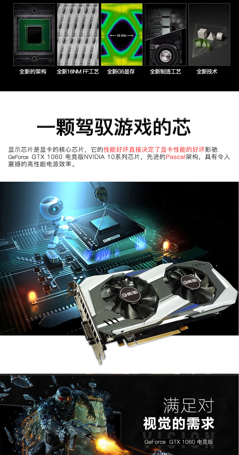 • 全新影驰GTX1060 高频显卡3G/6G/1050Ti/1065电竞游戏版超1063