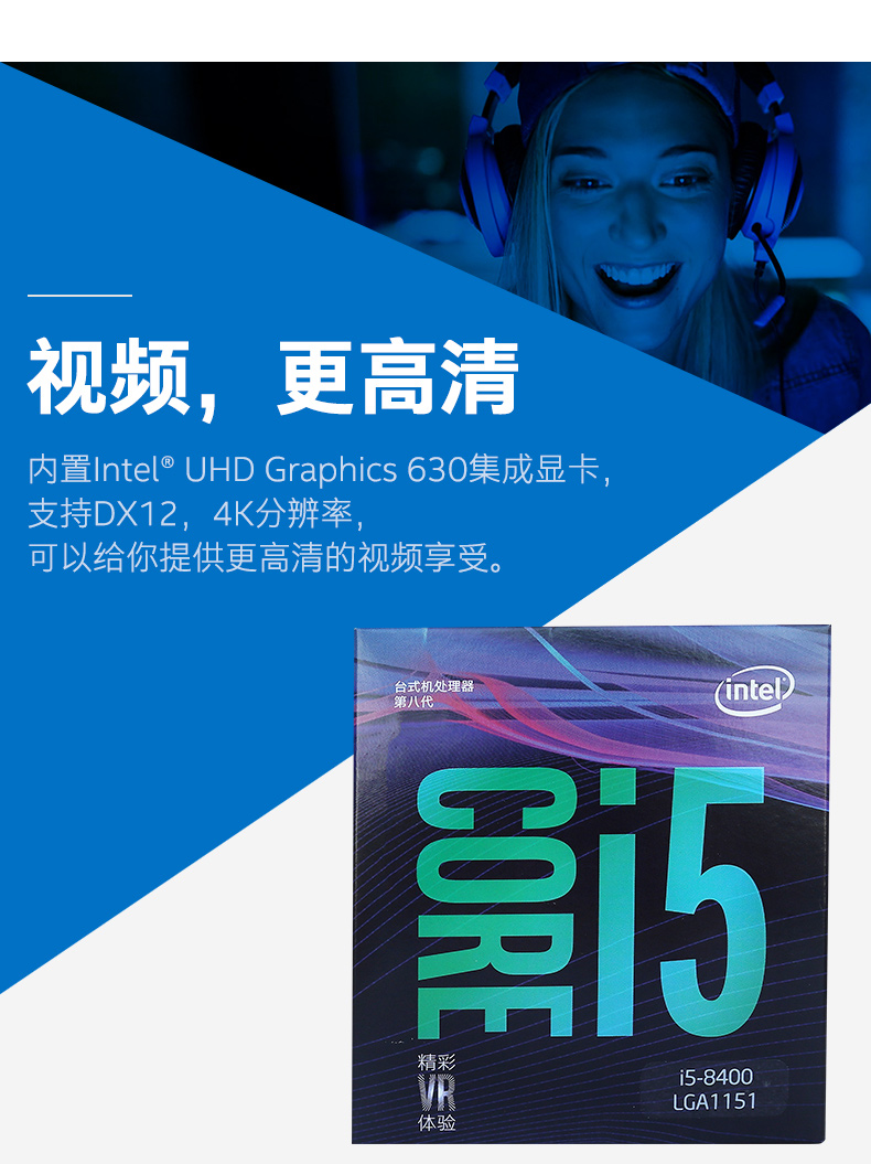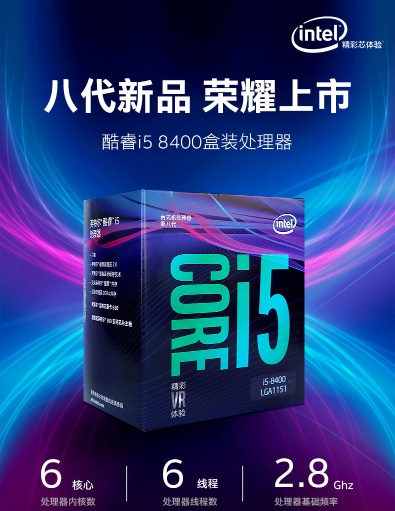 • Intel/英特尔 酷睿i5-8400盒装处理器 8代i5六核电脑CPU8400