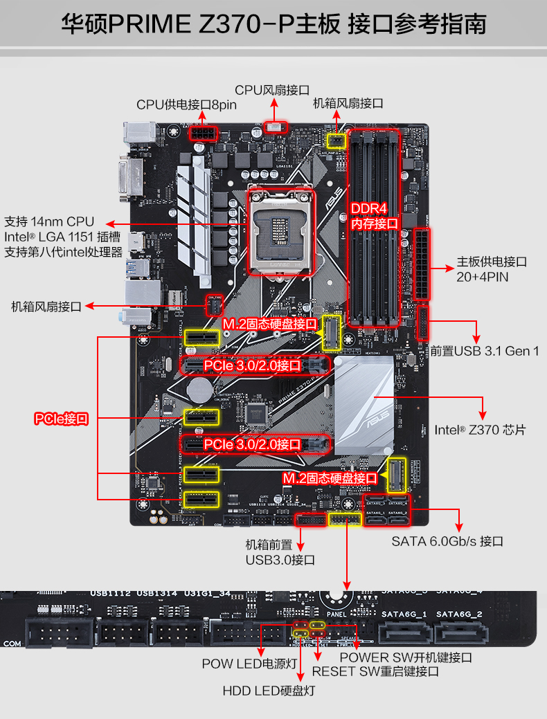 Asus/华硕 PRIME Z370-P台式机游戏电脑主板支持1151针i5 i7 CPU